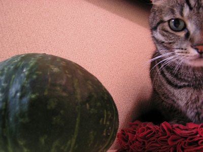 さて、実は苦手なかぼちゃ・・・二つもどうやって食べようかなぁ